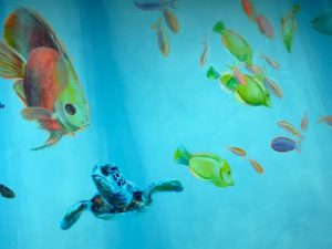 Each space was designed to guide the visitor into a transition of reflection and peace, to achieve a sense of safety through wonder.  Each painted element; the sea life, sun, moon, and sky, have deep meaning and significance. Additional features include warmer lighting and meditative music.